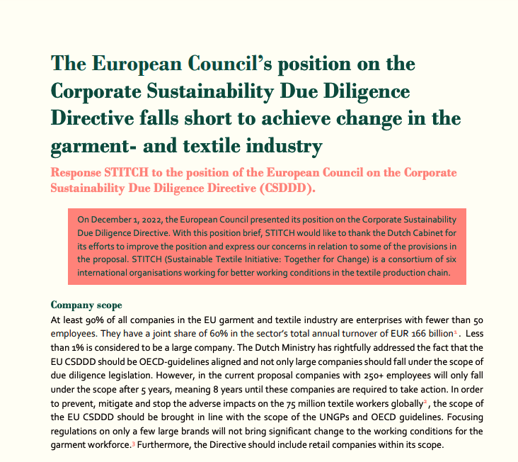 Katalyst’s research was quoted in the STITCH position paper on the EU Corporate Sustainability Due Diligence Directive, in a discussion about the importance of not limiting scope only to large companies.